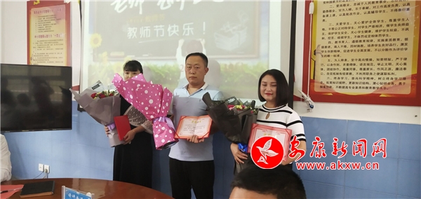 首先,雙河口鎮(zhèn)副書記李軼作了熱情洋溢的講話,他代表雙河口鎮(zhèn)黨委政府對全體教師致以節(jié)日的美好祝愿,對一年來奮戰(zhàn)在教育一線的教師和全體教職工致以節(jié)日的親切慰問,對涌現(xiàn)出的先進單位和優(yōu)秀個人表示熱烈的祝賀。雙河口鎮(zhèn)長唐波宣讀了《中共雙河口鎮(zhèn)委員會關(guān)于2017----2018學年度獲得教育先進集體、先進教育工作者、模范班主任、優(yōu)秀教師名單的決定》,大會現(xiàn)場響起一片熱烈的掌聲。與會領(lǐng)導為獲獎教師們頒發(fā)了榮譽證書,禮儀小標兵為受表彰的老師們送上了節(jié)日祝福和鮮花,活動現(xiàn)場想起了雷鳴般的掌聲,全體教師沉浸在一片歡樂的海洋。