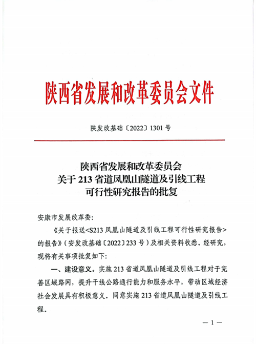 近日,省發(fā)改委下發(fā)文件,對(duì)213省道鳳凰山隧道及引線工程可行性研究報(bào)告予以批復(fù),同意213省道鳳凰山隧道及引線工程實(shí)施,標(biāo)志該項(xiàng)目進(jìn)入實(shí)質(zhì)許可階段,為今年開工奠基堅(jiān)實(shí)基礎(chǔ)。