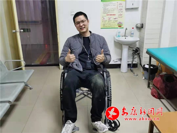 急診室內(nèi),平利縣公安局巡特警大隊(duì)副大隊(duì)長陳彥臻正坐在輪椅上,渾身都是泥巴,妻子過年為他置辦新衣也成了“開口笑”?吹铰?dòng)嵹s來已經(jīng)紅著眼眶的妻子后,他故作輕松地笑著豎起了兩只大拇指,本意是想逗妻子笑,沒想到卻把妻子逗得哭出了聲,妻子邊哭邊數(shù)落:“沒見過你這樣過年的,把自己過到輪椅上去了!”一時(shí)間這位有著“硬漢”霸稱的年輕特警竟像個(gè)孩子一樣手足無措。