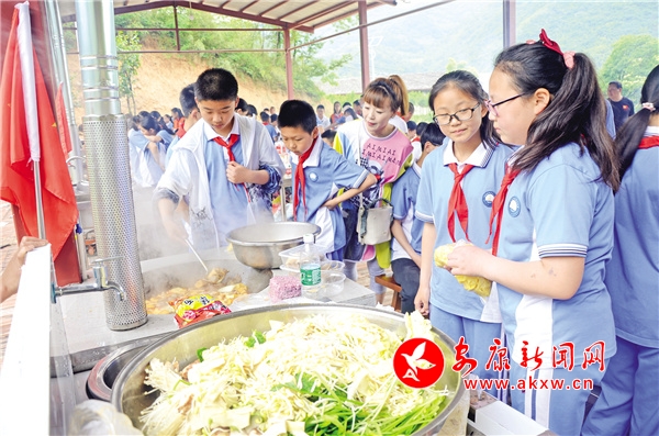 一草一木是記憶,一山一水皆含情。野營拓展課程是整個(gè)研學(xué)旅行的核心和精品,讓學(xué)生們親近自然風(fēng)物,感知熟悉泥土的芬芳和厚重。課程營地集野炊、農(nóng)事體驗(yàn)、野營體驗(yàn)、手工制作、森林探險(xiǎn)于一體,設(shè)有炊煙裊裊、荷塘春秋、耕耘樹藝、野蠻體魄四個(gè)活動(dòng)區(qū)。200余種花卉草木,滿眼芳菲,爭(zhēng)奇斗艷,學(xué)生們參觀辨識(shí)認(rèn)知植物,通過栽種、為植物掛牌、臨摹寫生等方式發(fā)現(xiàn)植物的奧秘,感受大自然的無窮魅力,做植物的朋友和環(huán)保小衛(wèi)士。枇杷、桃子、杏子、李子、板栗和梅子等多種果樹,可滿足學(xué)生們進(jìn)行水果采摘體驗(yàn)的需求,在東籬院里了解時(shí)令蔬菜、參與蔬菜種植,體驗(yàn)耕種的樂趣和勞動(dòng)的艱辛。在炊煙裊裊活動(dòng)區(qū),10座老式土灶,配套10個(gè)操作臺(tái)、10個(gè)清潔池、10套石磨,一字整齊排開,選菜、洗菜、切菜、生火、煮飯、炒菜,一切都井井有條。學(xué)生們?cè)谠⒔逃跇返倪^程中,感受野炊的樂趣,初步掌握飯菜制作的基本步驟和相關(guān)技巧,并感受一蔬一飯的來之不易,懂得珍惜糧食和蔬菜。參與了活動(dòng)的小學(xué)生唐梓涵深有感觸地說:“大家盡情享受一起努力做出來的美食,吃在嘴里,樂在心頭,格外美滋滋的。我們也知道了,父母每天精心為我們做好吃的,真的很不容易。”