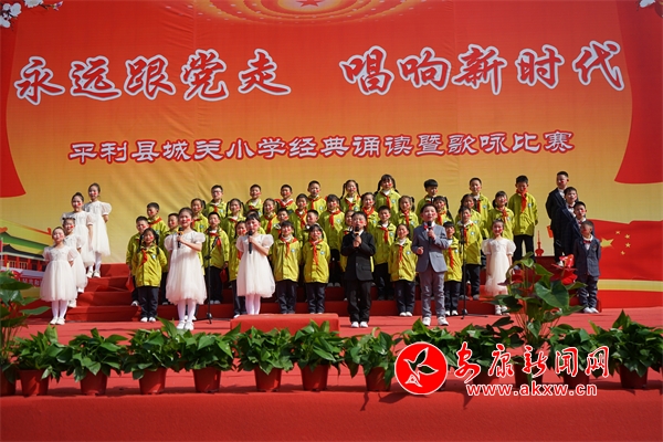 本次活動學校高度重視、各班精心組織、科任老師全力配合,活動取得圓滿成功。師生們用經典誦讀和最嘹亮的歌聲豐富了學校文化藝術生活,激發(fā)了學生愛黨愛國的熱情,展現(xiàn)了平利縣城關小學師生的藝術風采和團結向上的精神風貌,唱響了踏上新征程的時代號角。
