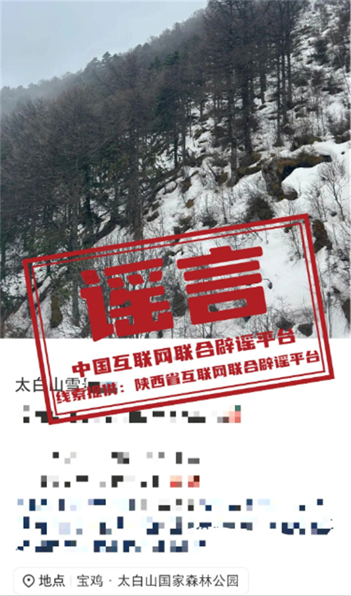 真相:近日,有網(wǎng)民發(fā)帖稱“陜西太白山迎來今秋第一場大雪”,并曬出視頻畫面,山林間白雪紛飛,屋檐上覆蓋著薄雪。相關(guān)視頻引發(fā)關(guān)注,有網(wǎng)民表示立即前往景區(qū)賞雪。對(duì)此,景區(qū)工作人員回應(yīng)稱,網(wǎng)傳視頻為往年下雪場景,目前太白山正在下大雨,景區(qū)已經(jīng)關(guān)閉。提醒游客出行前應(yīng)關(guān)注景區(qū)的實(shí)時(shí)公告與天氣情況,以免受虛假信息誤導(dǎo)。(來源:陜西省互聯(lián)網(wǎng)聯(lián)合辟謠平臺(tái)、@上游新聞)